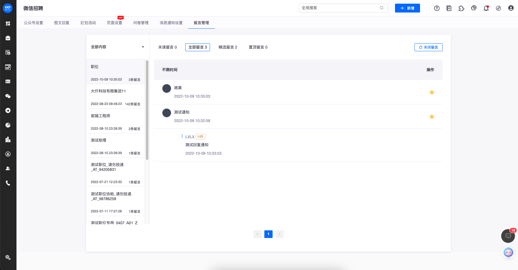 用户可以通过图文回复设置公众号自动消息回复功能,包括关键词回复设置、欢迎语(用户关注自动发送)、自动回复等相关设置,通过该功能保障候选人与公众号沟通过程中有消息回复,保存热度。避免候选人无法找到需要的内容。
